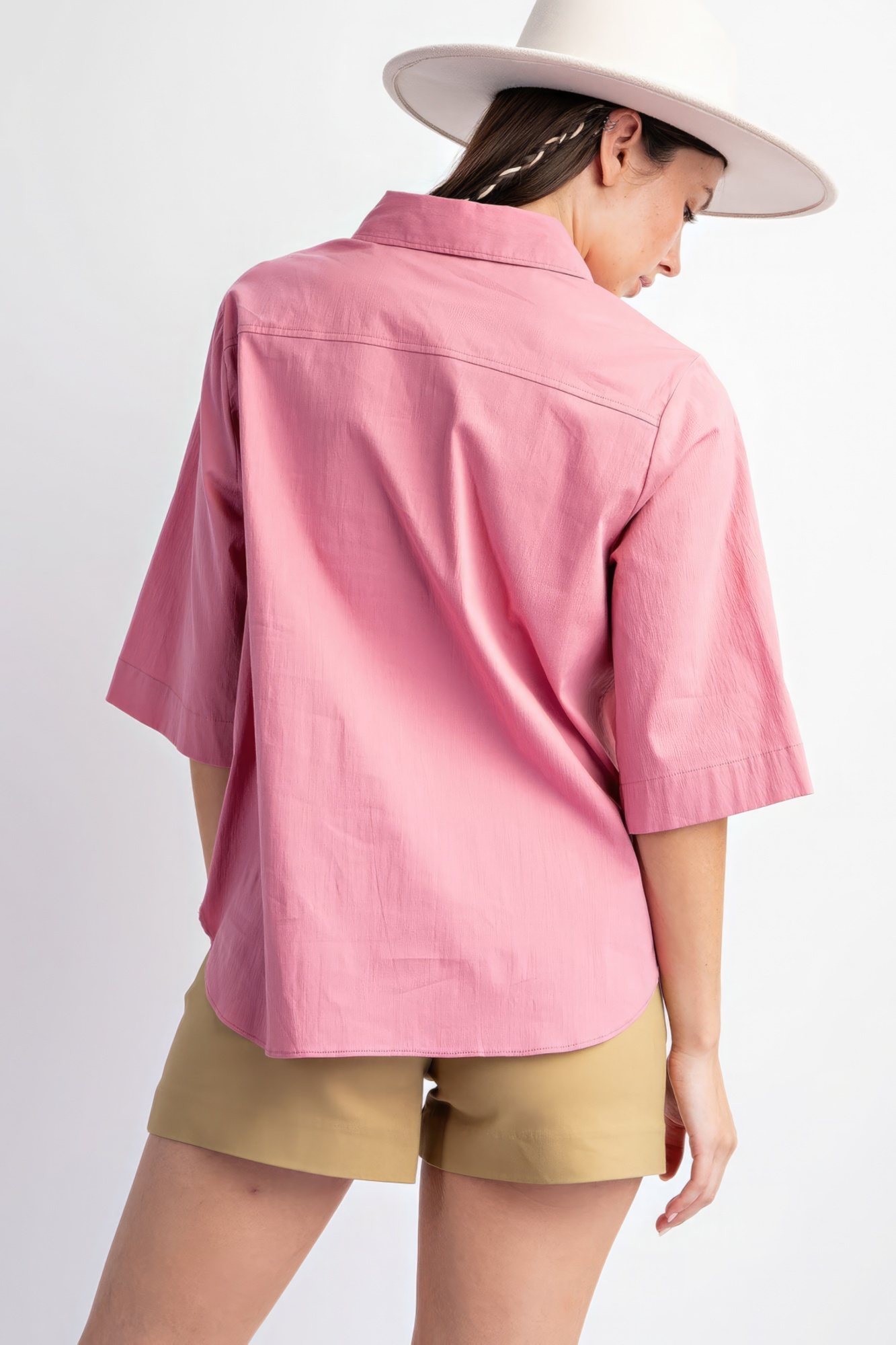 Make a statement with our Half Sleeves Stretch Poplin Button Down Shirt in Mauve. Add it to your cart now and embrace the perfect blend of fashion and comfort!