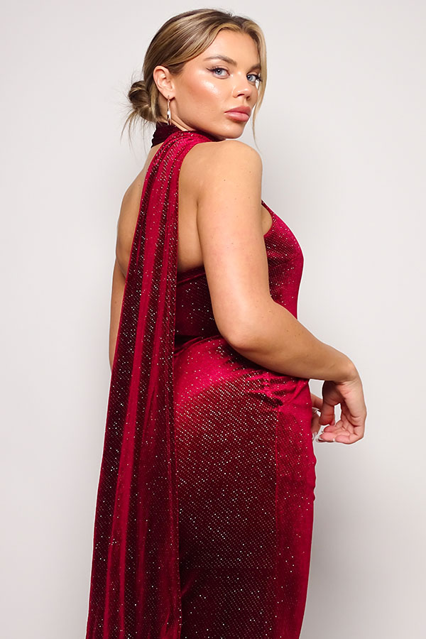 Scarf Top Glitter Velvet Jumpsuit