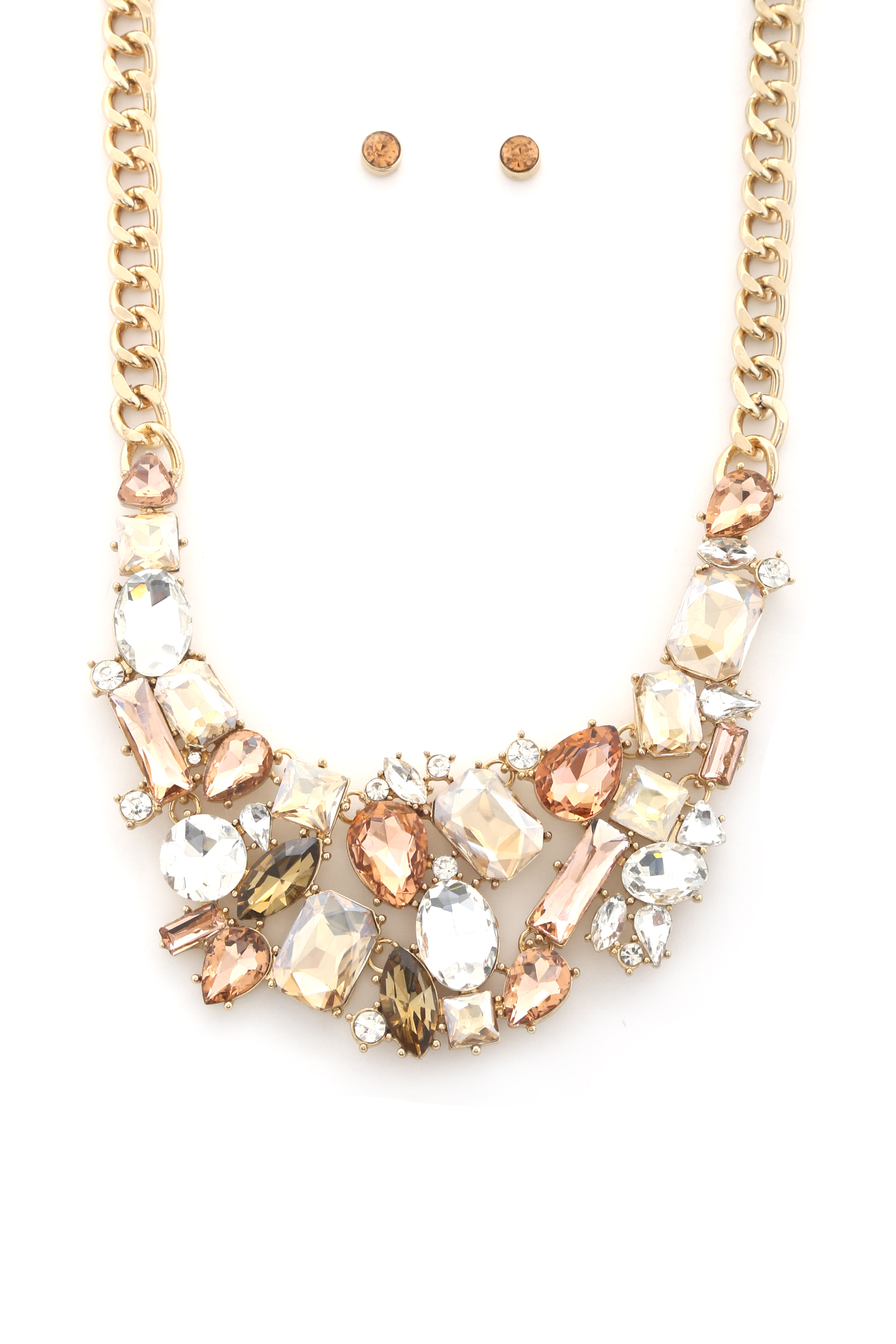 Teardrop Rectangle Shape Rhinestone Statement Necklace